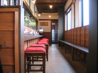 お店は縦に細長く左に待合席、通路、カウンター席と厨房です。