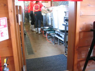 厨房内には巨大な寸胴が3つ、少し小さい寸胴が1つ見えます。