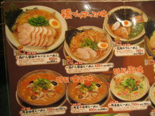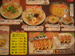 らーめんは鶏がらスープ味、豚骨スープ味、特製味噌味、特製ごま味、つけめんと色々そろっています。