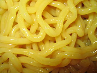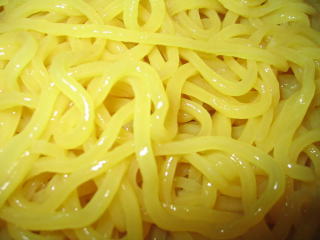 黄色い透き通った腰のある、ポリフェーノール麺です。