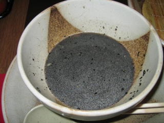 ちょっとしょっぱいような気がする黒ごまダレに着けていただきます。