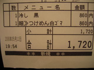 つけめん白ごま味860円の細麺です。