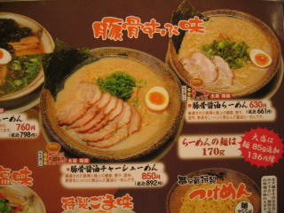今日は豚骨すーぷ味の豚骨醤油らーめん630円を、こってり太麺で、さらに大盛136円でいただきました。