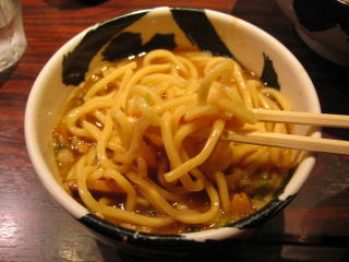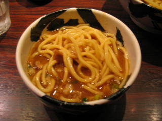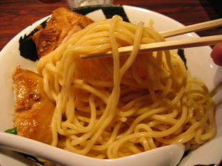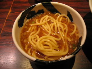 甘じょっぱい感じの節の効いたつけダレに、麺をたっぷり絡めていただきます。