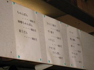 壁に貼られたメニューです。