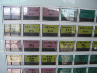 日曜のお昼時、店内は混んでおり、券売機の脇のイスで待つ人も時折あります。