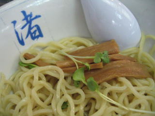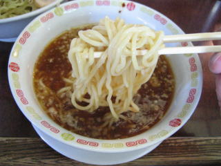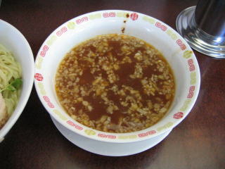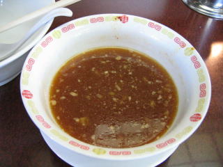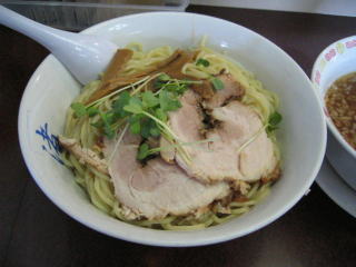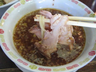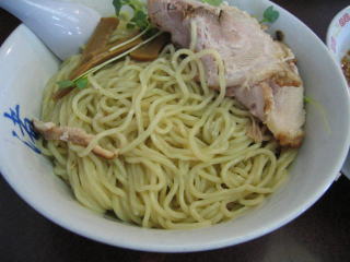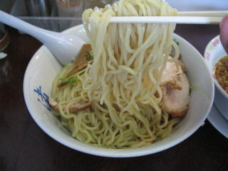背脂の浮いた濃い目の醤油味のつけダレにつけていただきます。