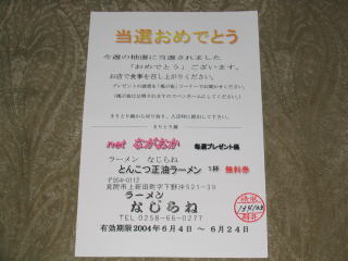 平成16年6月 見附市のラーメンなじらねへ行きました。