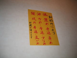 「味濃め、油多め、麺固め」で頼みました。
