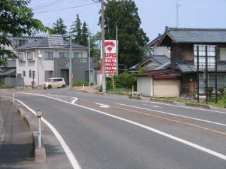 北五泉駅をまっすぐ走って左折、道が右カーブになります。
