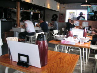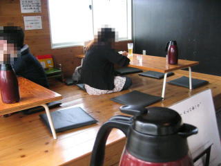 店内は正面に厨房とカウンター席、左手にテーブル席、左手奥に小上がり席です。