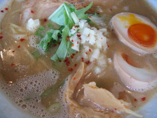 「豚骨を強めに煮込んだ濃厚白湯スープ、さらに煮干しと鶏ガラ、野菜の甘さもプラスした」そうです。