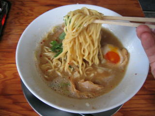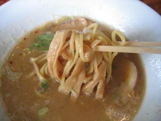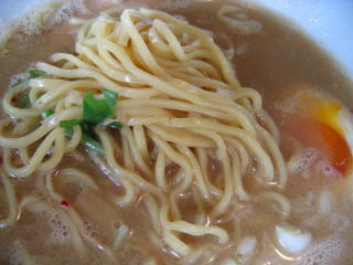 麺は茶色の中太麺、ほぼストレートな麺です。