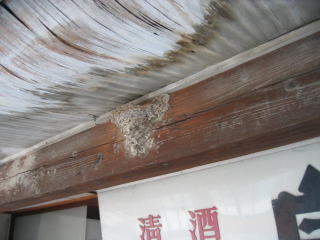 「酒屋さんの角を左折してまっすぐ行くと駅」、酒屋さんの軒先にはツバメが巣を作っていました。