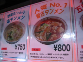 人気No1蒙古タンメン800円です。