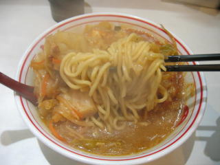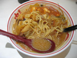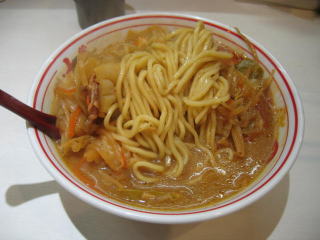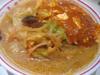 味噌仕立ての野菜タンメンに麻婆豆腐がかかっている感じです。