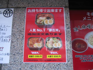 お持ち帰りの「蒙古丼」などもあります。