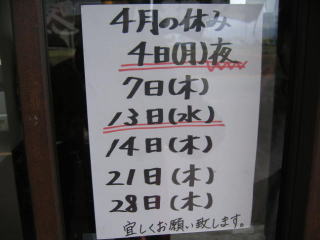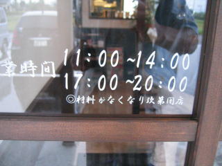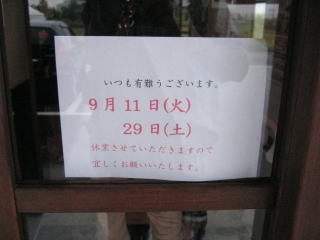 9月17日(祝・月)、22日(祝・土)と2回ほど夕方お邪魔したのですが、いずれも材料切れ?で閉まっていました。