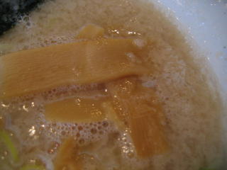 濃厚の証か、スープは泡立っています。