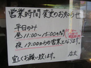 平日の通し営業は止めて、15時から17時までの中休みができたようです。