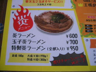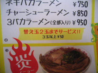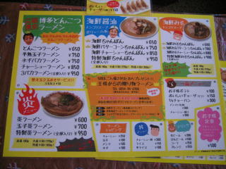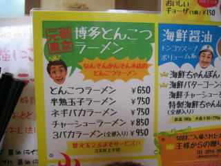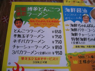 こちらは4回までのご来店の方用?のメニュー、とんこつラーメンが650円です。