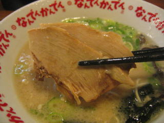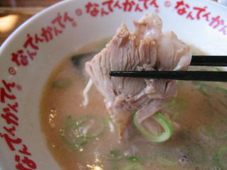 チャーシューは「とんこつラーメン」の特徴なのか、パサパサのチャーシュー、3枚入っています。