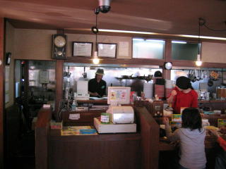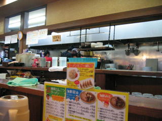 カウンター席の向かいが厨房、アルバイト風の若い三人でやっているようです。