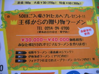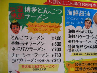 5回以上ご入場のお客様専用(会員価格用)メニューはとんこつラーメン500円です。