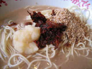 替え玉2玉目、紅生姜、白ゴマ、おろしニンニクを入れてみました。