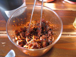 辛く、ニンニクをたくさん入れたせいかスープがしょっぱくなり、ここまでです。