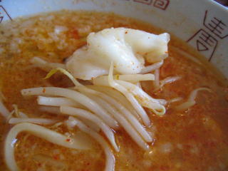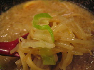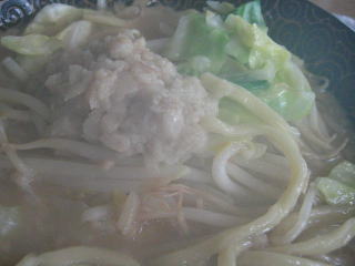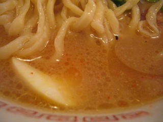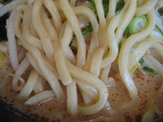 今日の「NEO濃厚ラーメン」の麺は昨日のそれとは明らかに違う、平打ち縮れ麺、ちょっと柔らかめです。