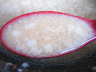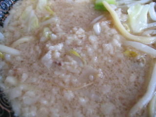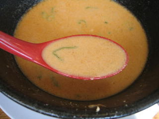 背脂の塊をスープに溶いて一気に背脂増量、スープが一層マイルドになります。