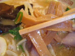 薄いが脂身の少ないチャ−シュー2枚、好きな味です。