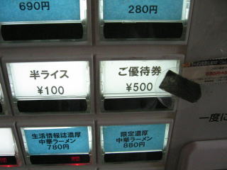 クーポン持参で880円が500円の「NEO濃厚ラーメン」大盛無料と「トッピングサービス」券も使いました。