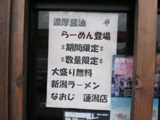 平成25年11月17日(日)の午後 長岡市の「新潟ラーメンなおじ蓮潟店」さんにお邪魔しました。