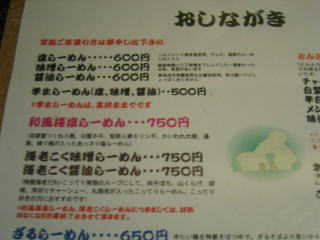 「スープはソルトレイク産岩塩使用。テレビ、雑誌のらーめんはこちら」とおしながきに書いてありました。