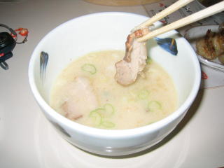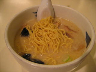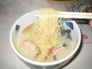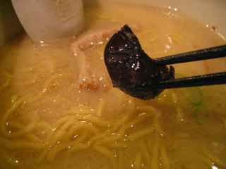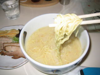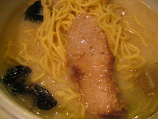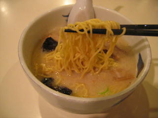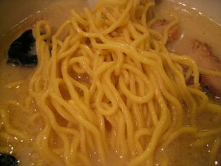 麺は少し縮れの細麺で、固めです。スープは一見とんこつのようです。