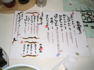 お水や、おしぼりが出てきます。お品書きもオシャレです。