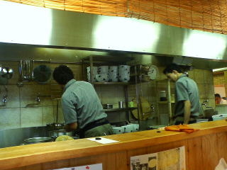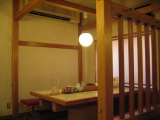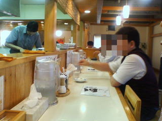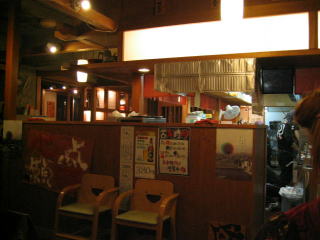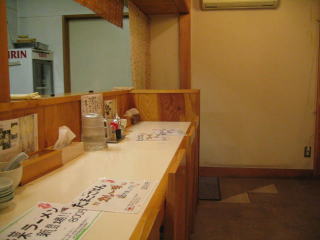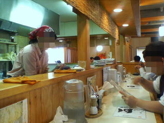 お店を入りますと正面に厨房、L字型のカウンター席、右手には大きなテーブル席があります。