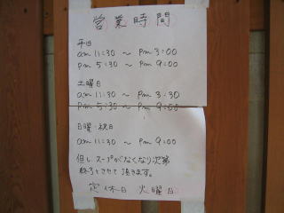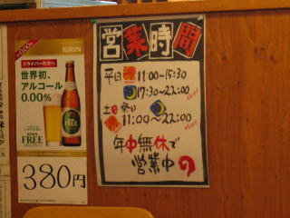 日曜・祝日は午前11時30分から午後9時まで、の通し営業です。