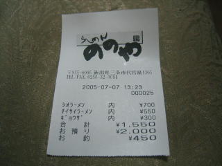 平成20年6月1日、三条市の「らーめん ののや」さんにお邪魔しました。