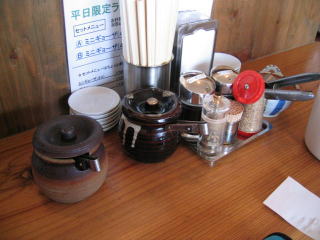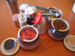 薬味には辛もやし、紅生姜、ごま、にんにくなどあります。