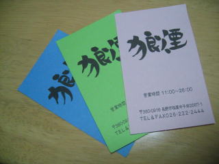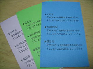 店頭にあった名刺、色違いですが内容は同じです。