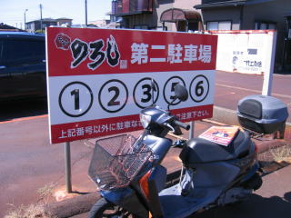 お店前の駐車場はほぼ満車ですが、今日は原チャリで来ましたので駐車場の片隅の自転車が止まっているところに駐車しました。