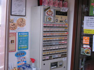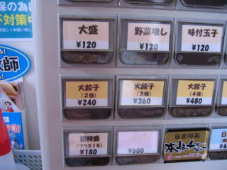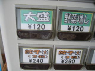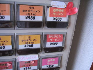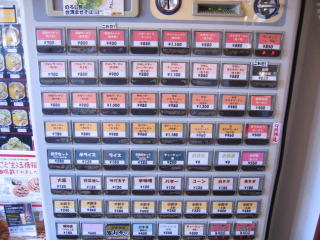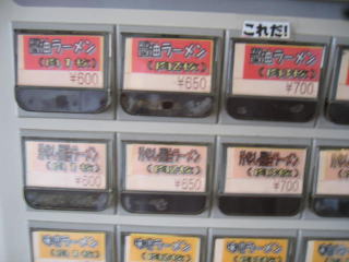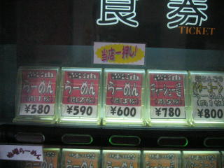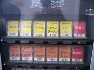 左側には券売機、ラーメン(肉3枚)600円と大盛100円、背油多めでお願いしました。