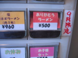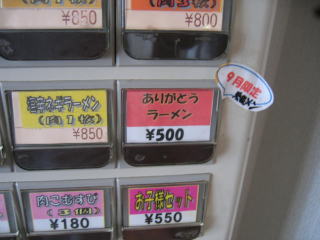 今日は「9月限定 細麺 ありがとうラーメン」500円の大盛120円です。