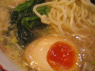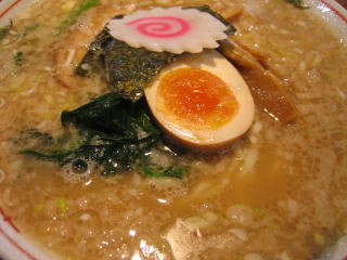 半味玉、鳴門、海苔、ほうれん草、メンマなどが載っています。