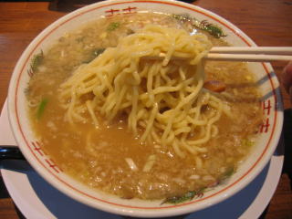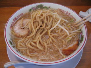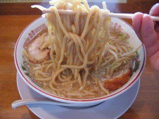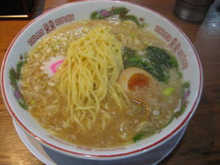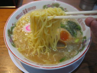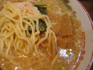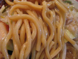 中太麺ですが、お隣の男性が食べていた太麺の方が美味しそうでした。