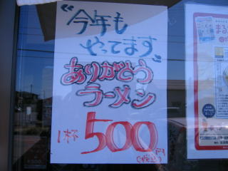 今年も「ありがとうラーメン」税込み500円狙いで来ました。