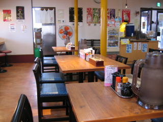 店内は厨房にカウンター席、2人掛けと4人掛けのテーブル席などがあります。